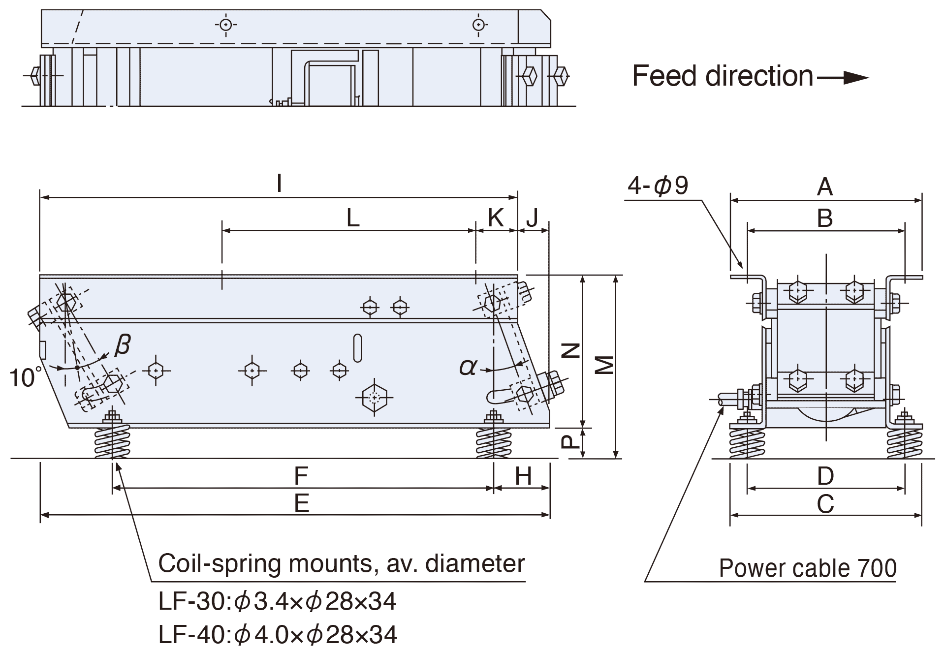 | LF-30 | 0゜~20゜ | 10゜~30 | 200/220 | 1.5 | 50~90 | 23 | 1.25×3 cores | C10-3VF/3VFEF |