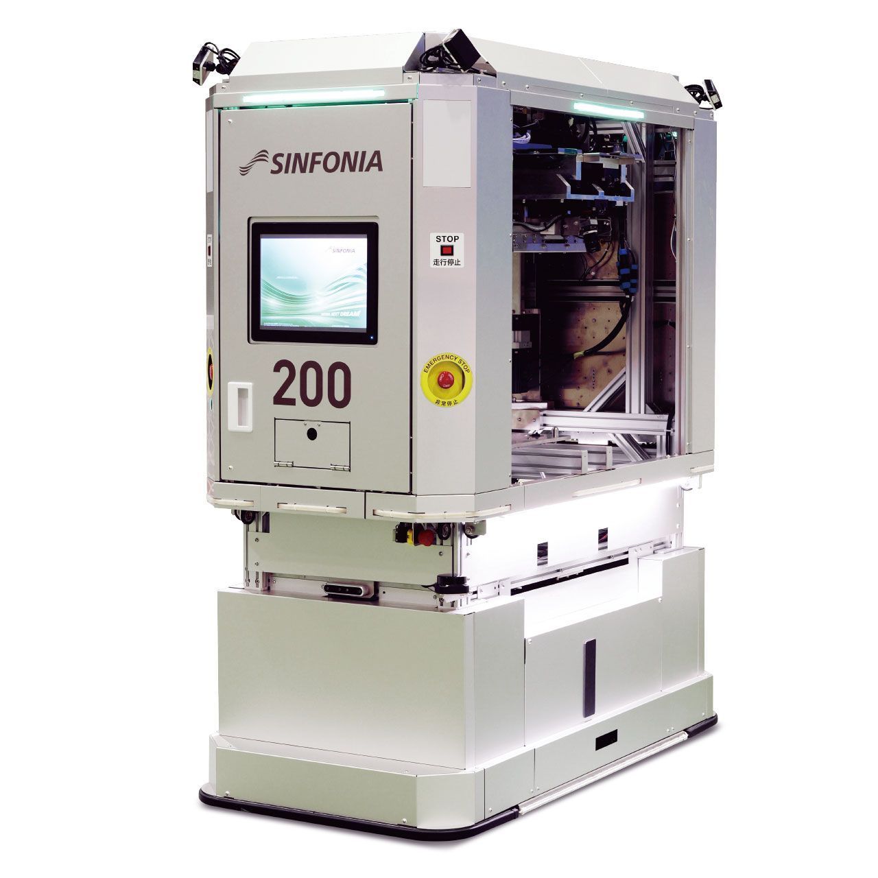 Emergency stop, Object / human detection, Destination display, Tape switch, Turn signal, Signal tower, Area sensor, Travel melody |