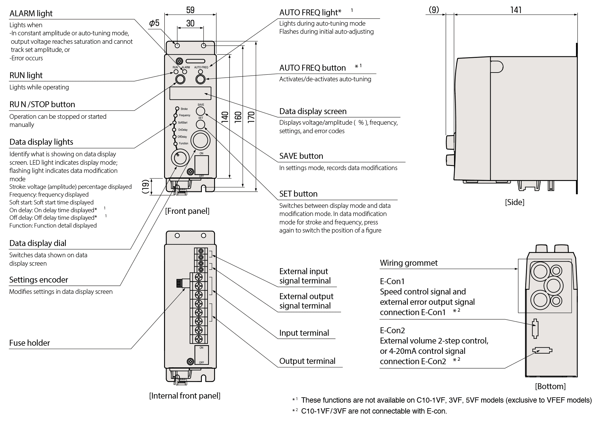 Speed selector | Selection of up to 4 amplitude settings by means of external signal *A connector is included for C10-1VCF |
