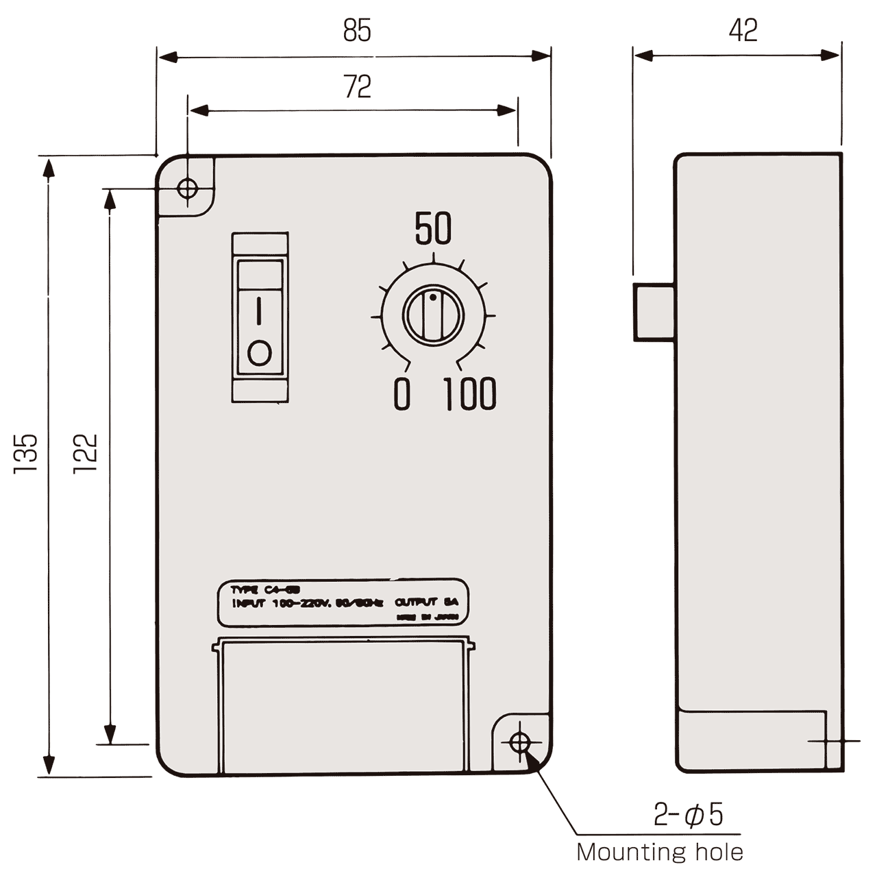 0~190V(for AC 200V input) 0~95V(for AC 100V input) Optional unit C10-TR allowsoutput voltage in 0-190V range |