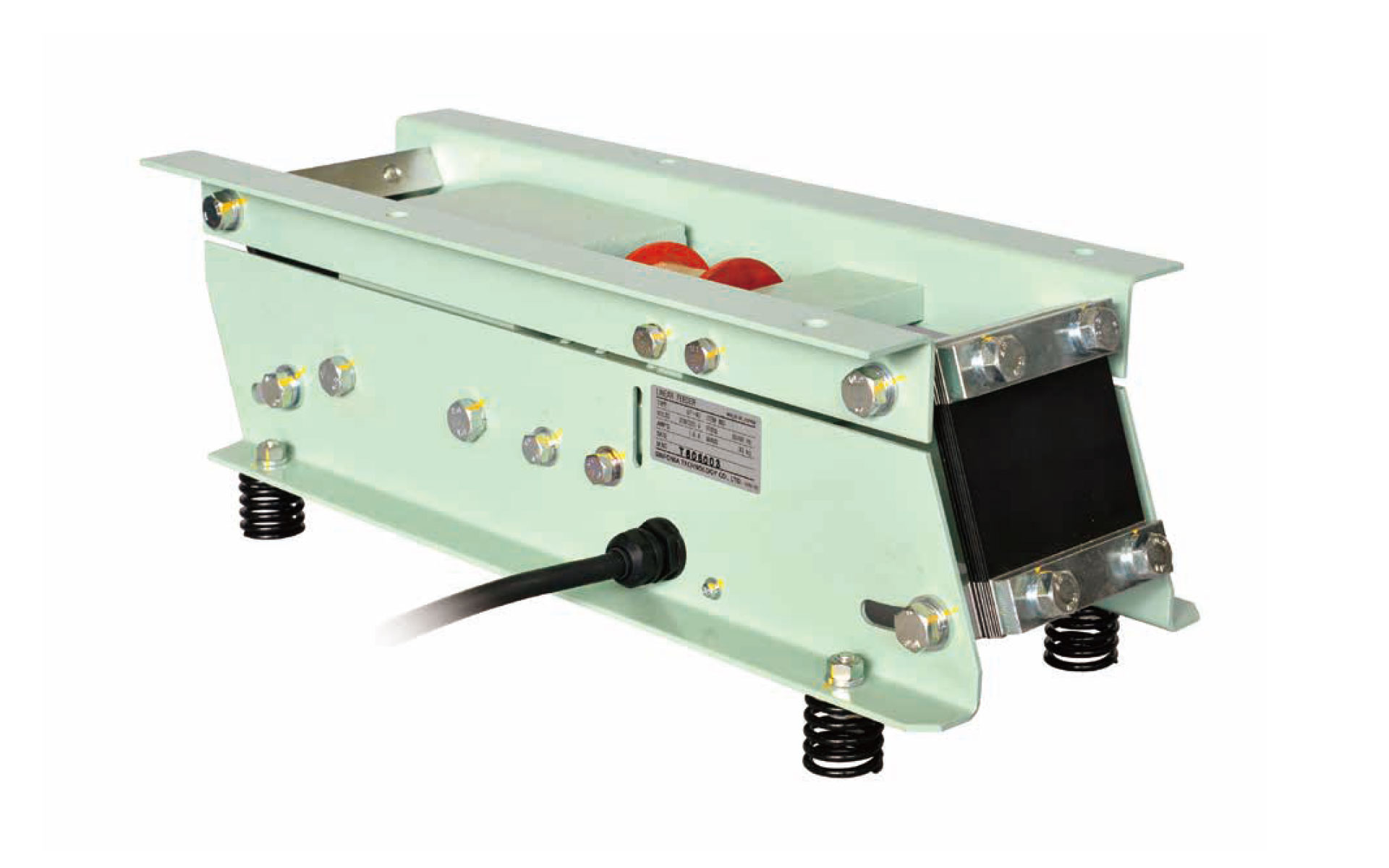 Linear feeders are electromagnetic drive units that steadily and convey materials through troughs or chutes. The troughs or chutes are vibrated directly by leaf springs attached to both ends of the drive units that work in combination with an electromagnet. Because the leaf spring's attachment angle can be adjusted, the vibration characteristics can be freely modified and uniform vibration can be achieved throughout the entire length of the trough. This flexibility permits the operator to maximize efficiency by selecting the type of vibration that best suits the material being delivered.