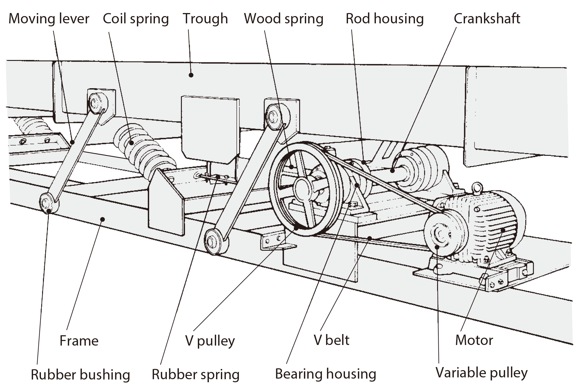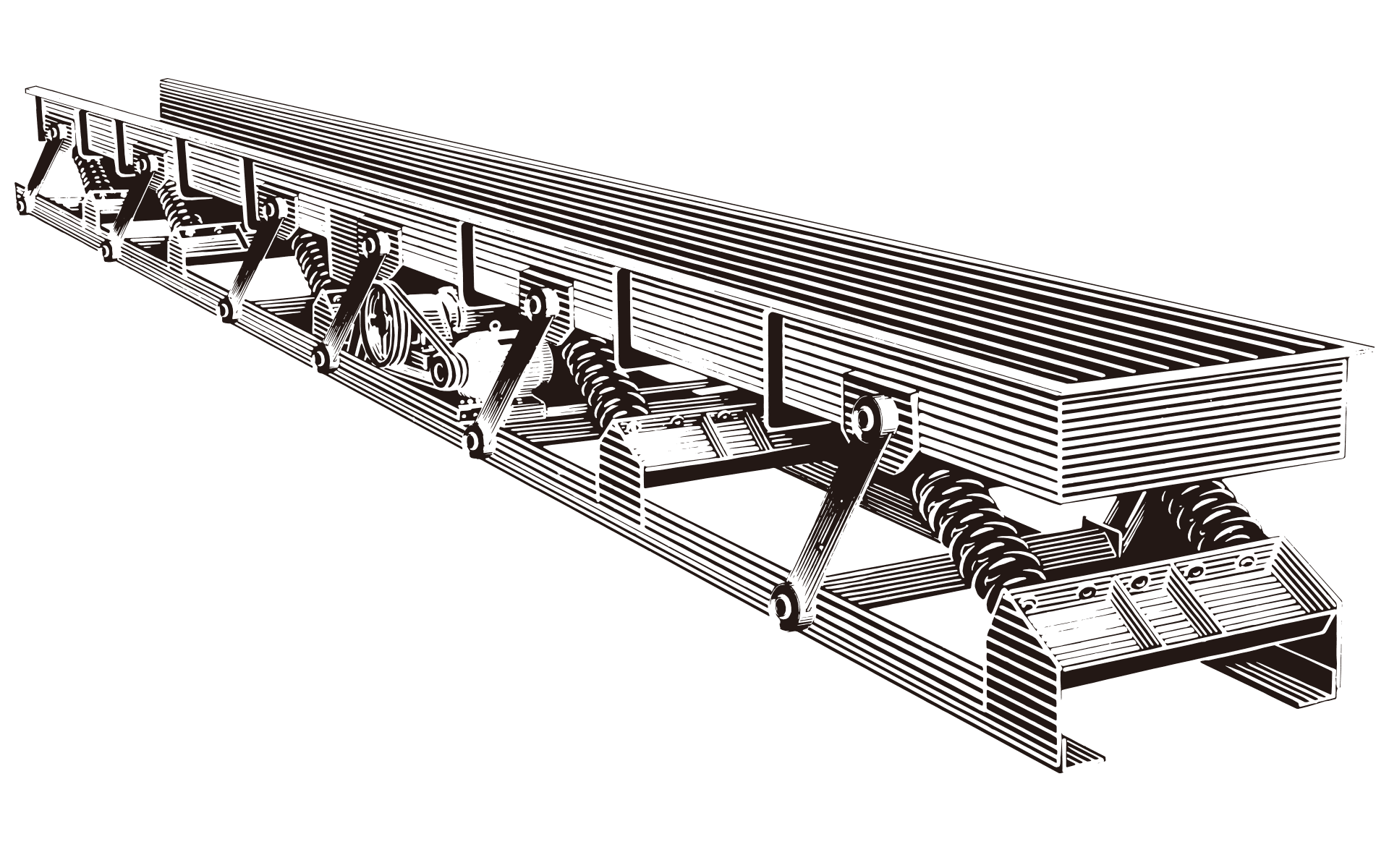 Simple, low cost version. Suited to long distance, narrow bed conveyance. Accommodates drying, cooling etc.