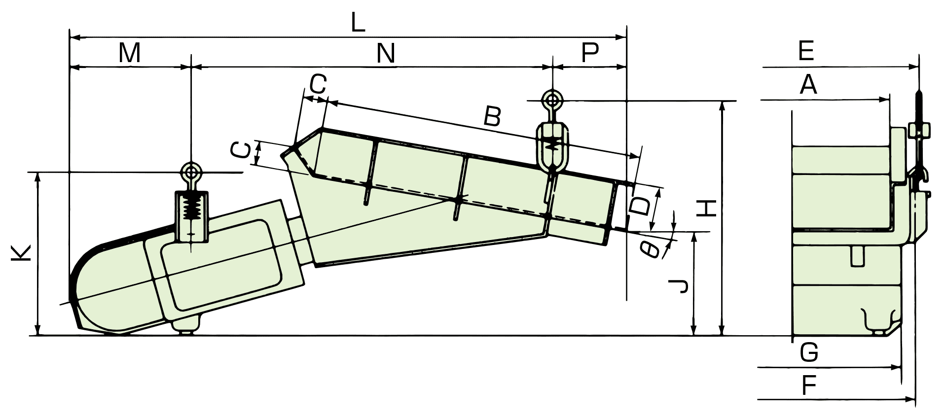 Trough inclination θ may be changed according to feeding capacity or installation conditions.