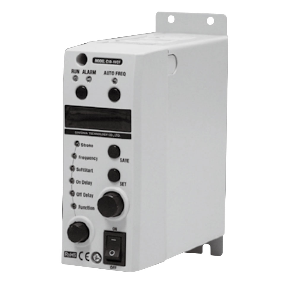 A controller with a built-in constant amplitude unit is recommended for applications in which an adhesive material must be fed because it is effective for preventing excessive amplitude due to adhesion.