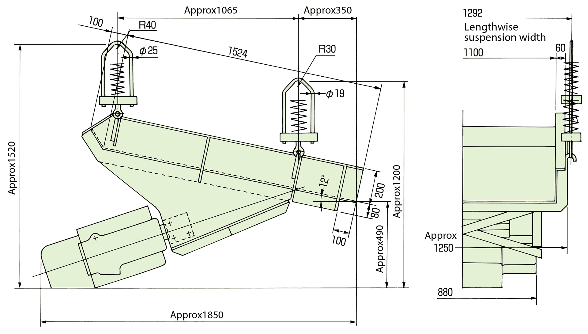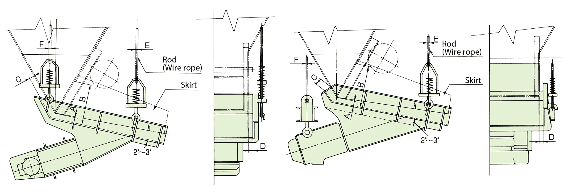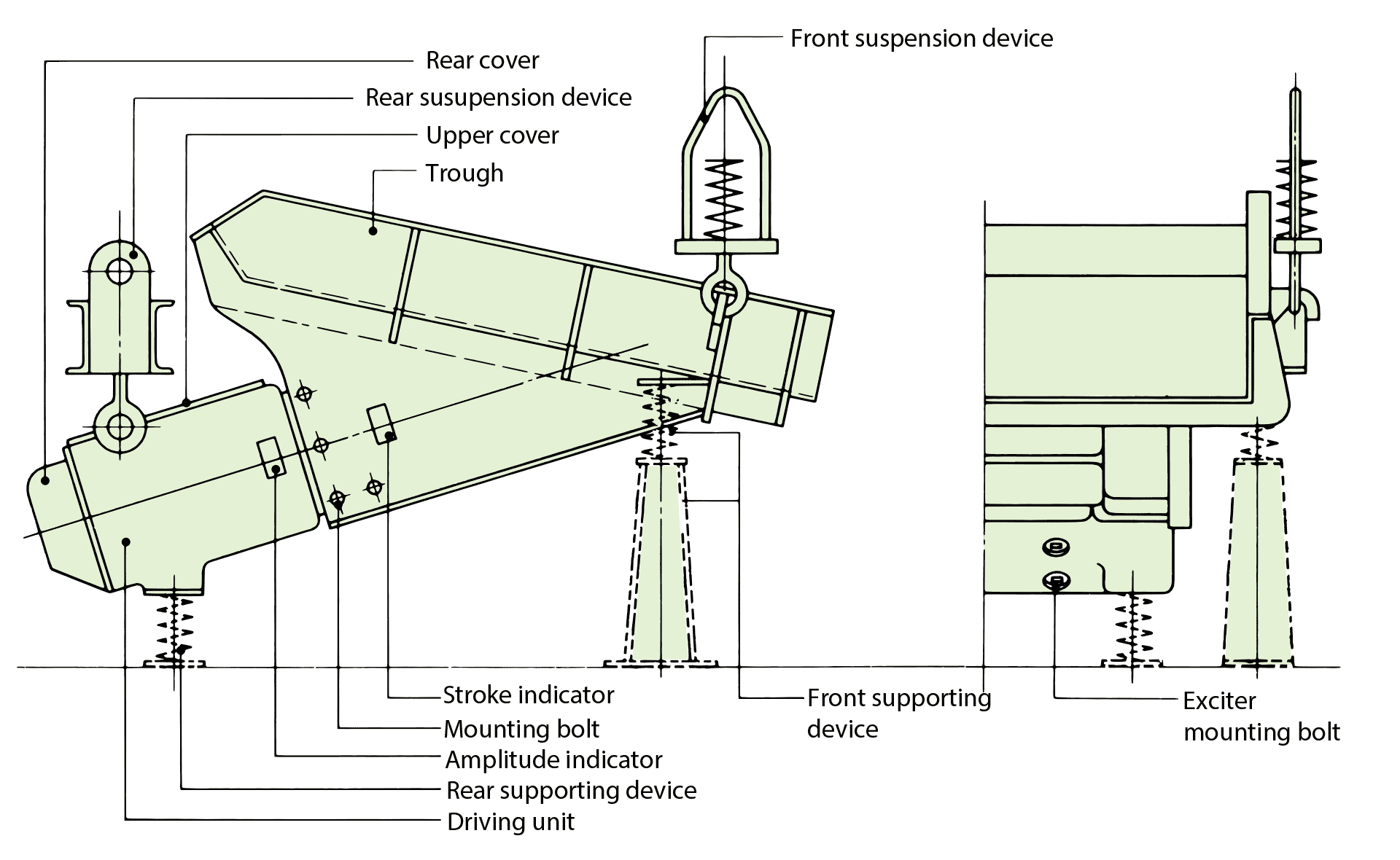The trough and the drive unit are hold by suspension device (if you use a suspension type) or supporting device (if you use a floor mounted type).