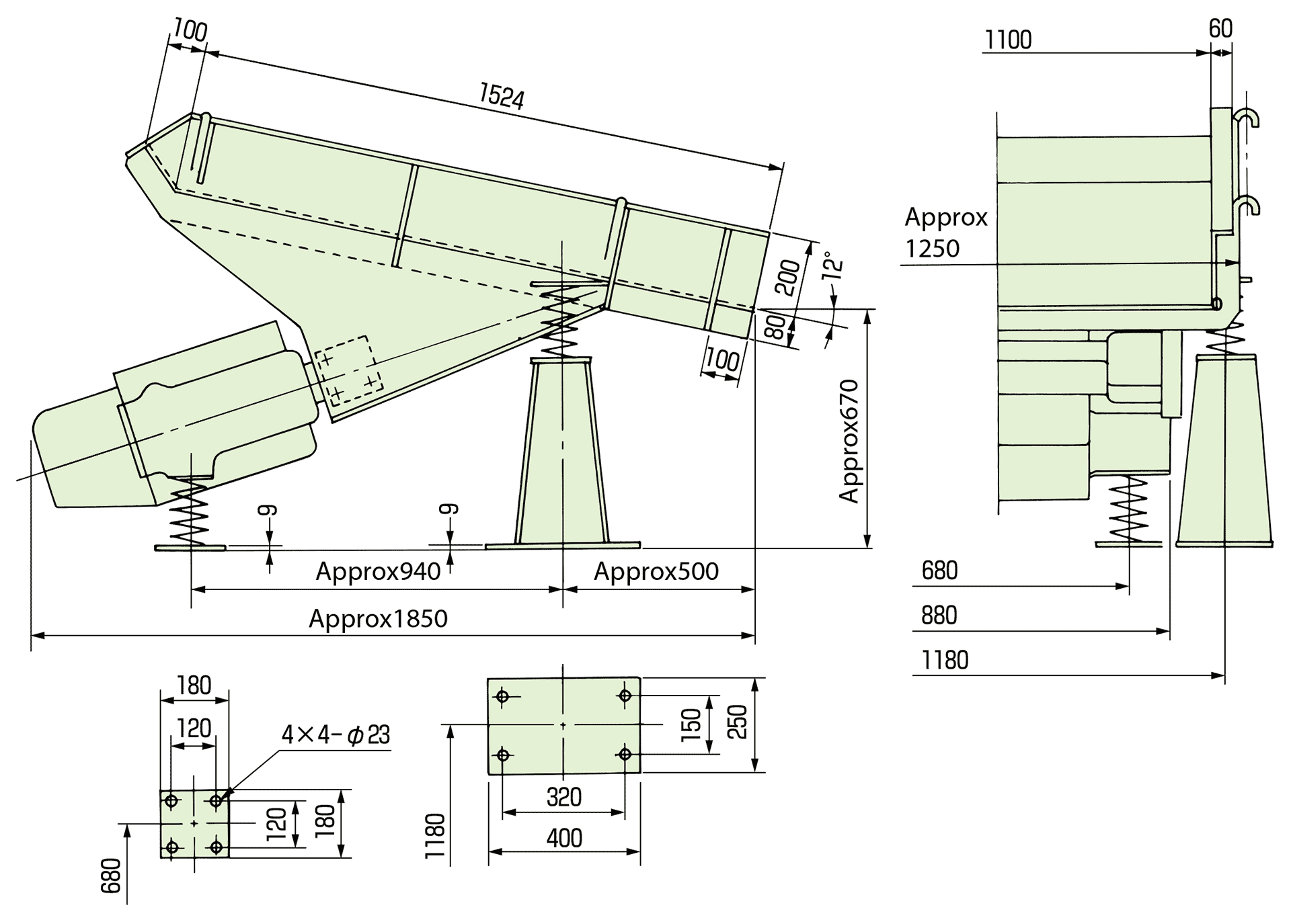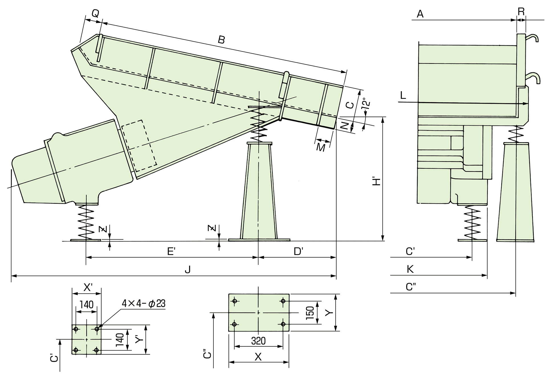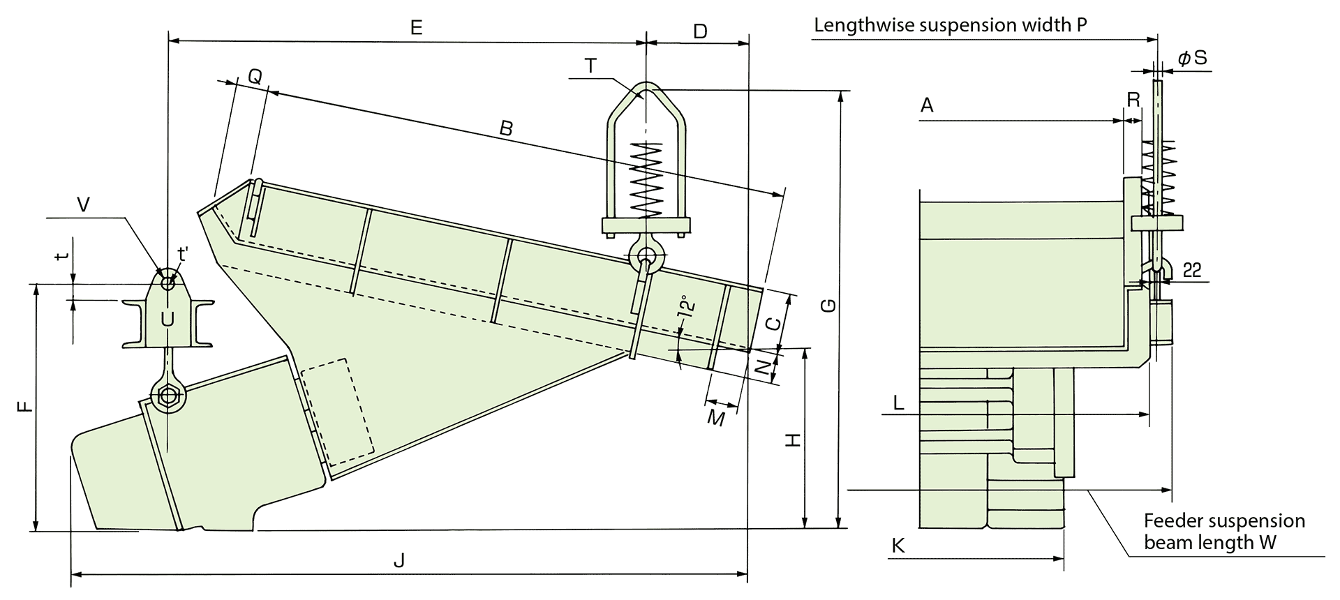 The trough and the drive unit are hold by suspension device (if you use a suspension type) or supporting device (if you use a floor mounted type).