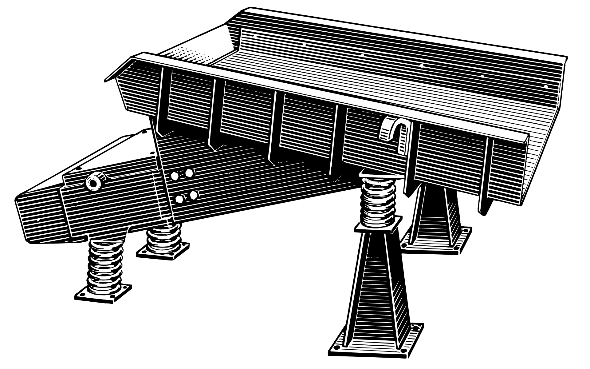 This Rubber Spring Feeders are vibrating feeders in which strong vibration generated by rotation of unbalanced weights is effectively combined with rubber springs. Due to the use of resonance vibration, high efficiency can be obtained and only a small amount of drive power is required.